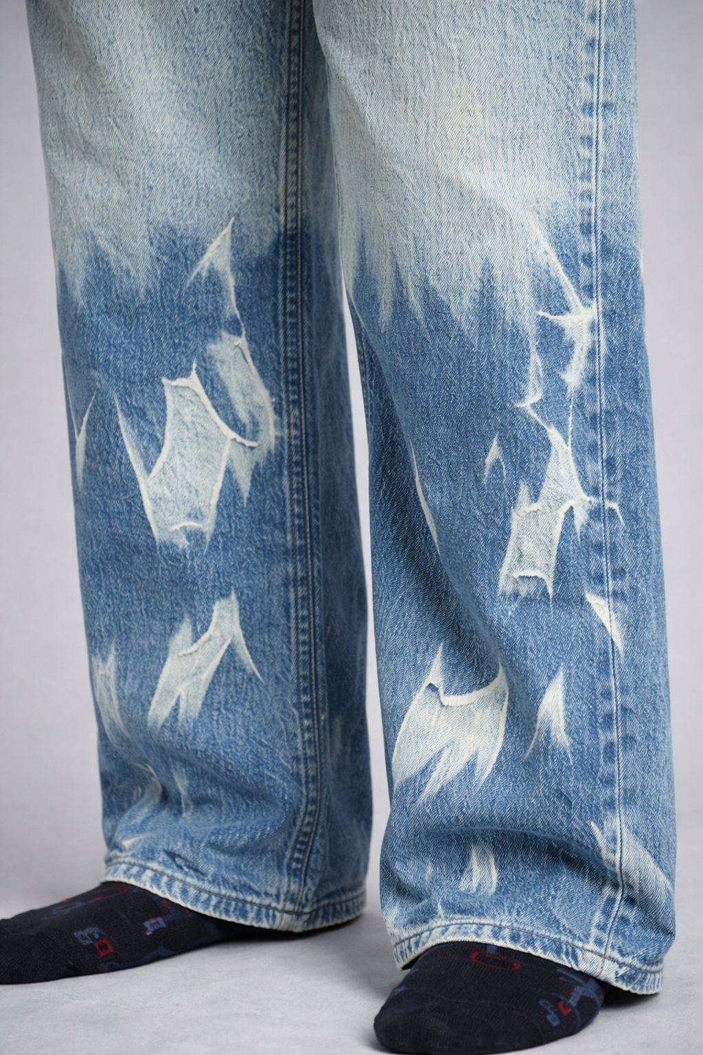 This is what denim looks like after the process. The wash is the design. Distressed. Not damaged.